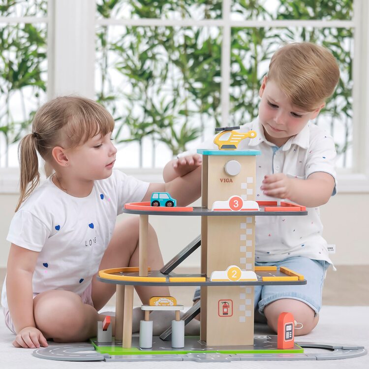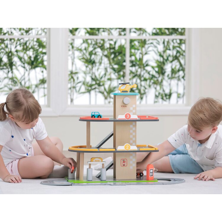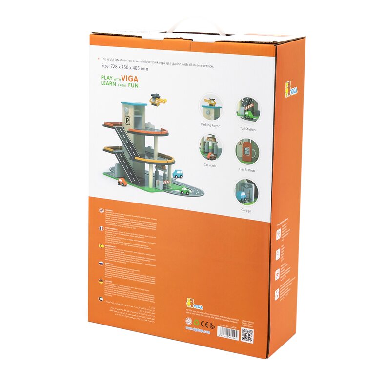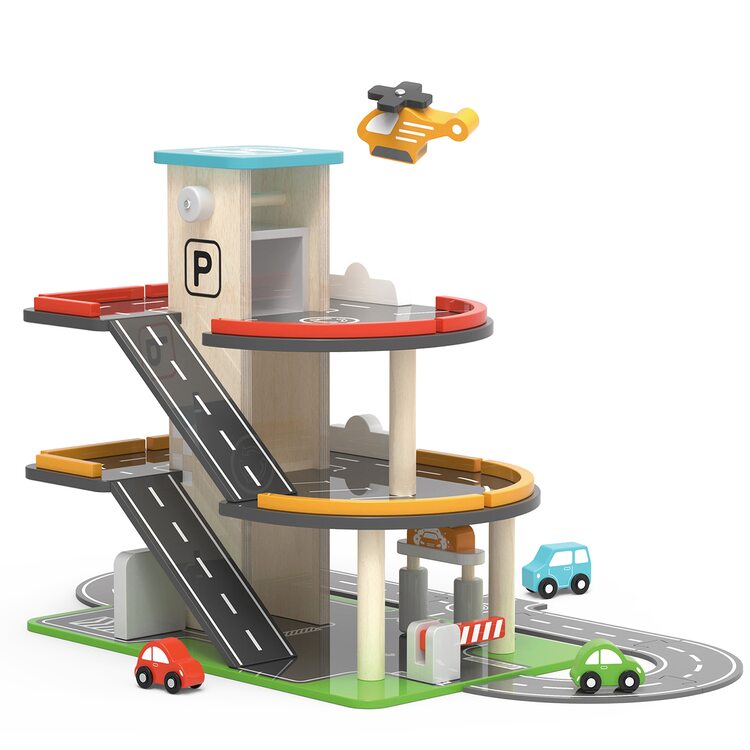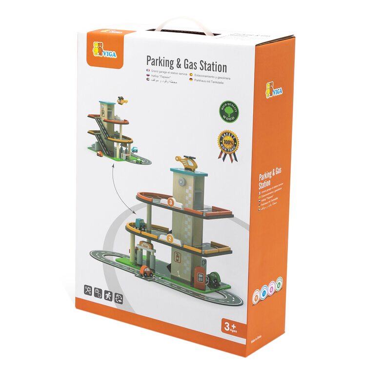 Игровой набор представляет собой несколько уровней и включает: лифт, вертолетную площадку, АЗС, бензоколонку, автомойку, шлагбаум. Также в набор "Паркинг" входят 3 разноцветные машинки, вертолет. Играя, малыш сможет обустроить стоянку для машин как ему удобно, добавляя новые конструкции или модернизируя старые.