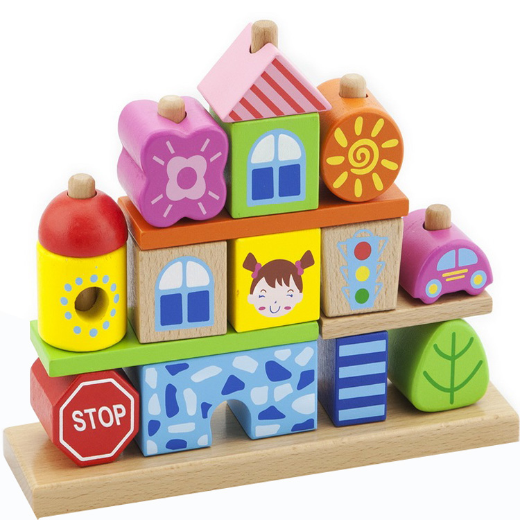 Конструктор складывается в различные городские пейзажи, как пирамидка - насаживанием деталей на 8 осей. Деталями можно играть и отдельно, складывая все новые сооружения.