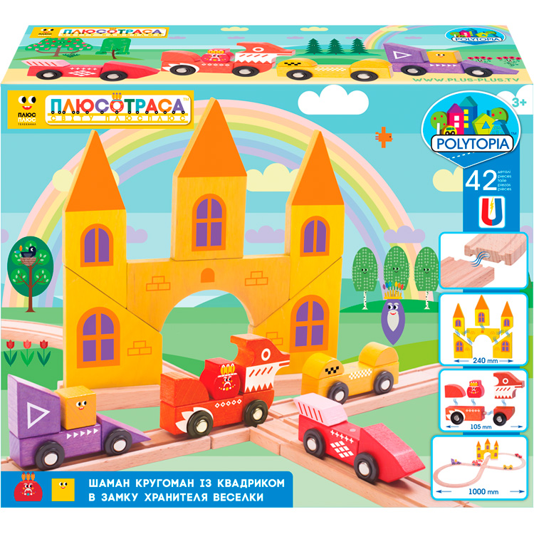 Политопия – игрушки нового поколения. Все детали конструктора Шаман Кругоман - на магнитах; это исключает сложности при сборке, нестыковку деталей. Простая форма базовых элементов позволит комбинировать их в любом порядке: строить заборы, арки, башни и даже целые замки. Автомобили на колесах разнообразят игру, сделают ее подвижной и увлекательной. Конструктор Шаман Кругоман с Квадриком в Замке Хранителя Радуги из 42 деталей – способен сделать волшебный мир конструирования доступным для самых маленьких.