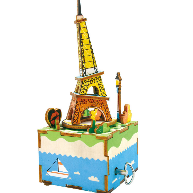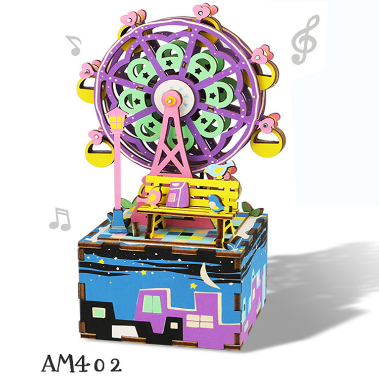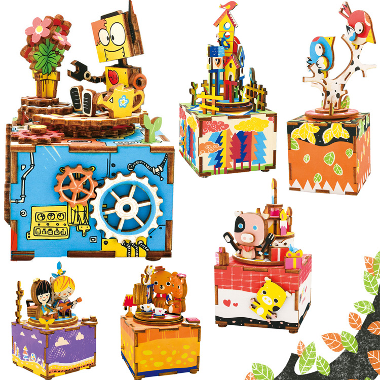 Заводные шкатулки – новинка на рынке детских товаров. Их выпускает компания «Роботайм». Наборы разные по уровню сложности. Можно выбрать простую карусель с фигурками лошадок, зайчиков. Или купить музыкальную шкатулку со сборным колесом обозрения, городской застройкой, цветным домиком на дереве.