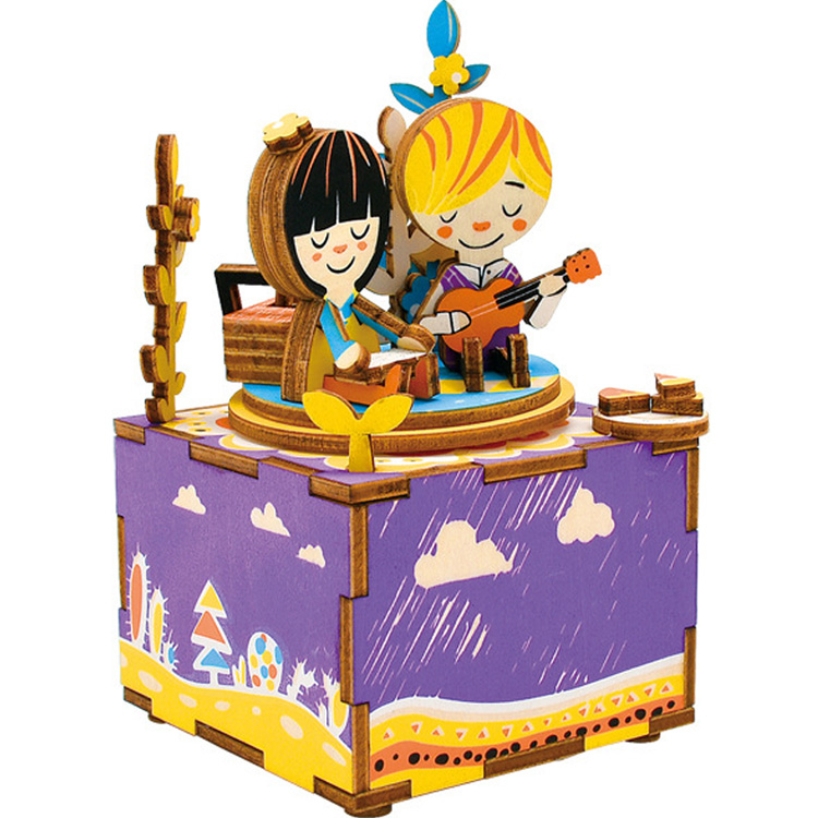 Малыши обожают музыкальные игрушки. Но детям старше 3-х лет их покупают редко. Забывая о том, что музыка развивает слух, моторику, чувство ритма. С этой точки зрения шкатулка-конструктор – идеальный выбор для мальчиков и девочек от 3-ти до 10-ти. Красивая качественная игрушка выполнена их экологичных материалов. Ее прочность обеспечивают глубокие соединительные пазы, а устойчивость – подставка в виде куба.