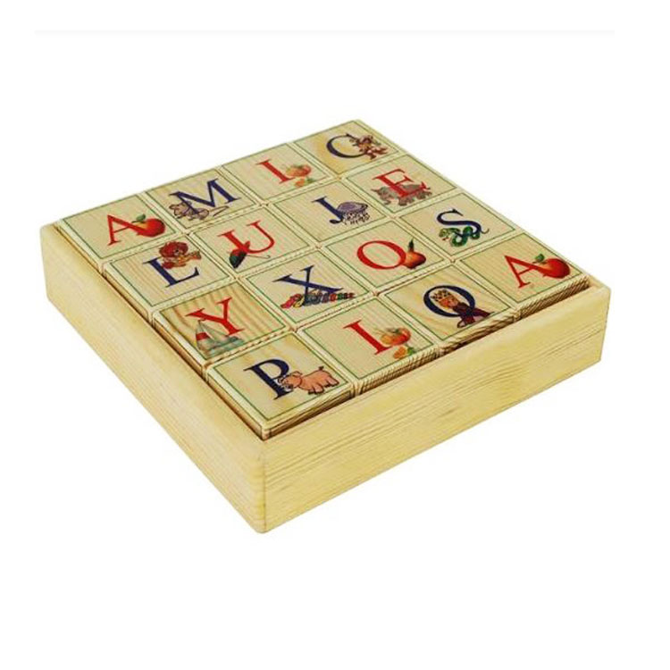 Набор английского алфавита, состоящий из 16 кубиков, выполнен из прочных материалов, прошедших сразу несколько этапов обработки. Все они компактно помещаются в удобную коробку. На каждый кубик нанесено по букве и картинке.
