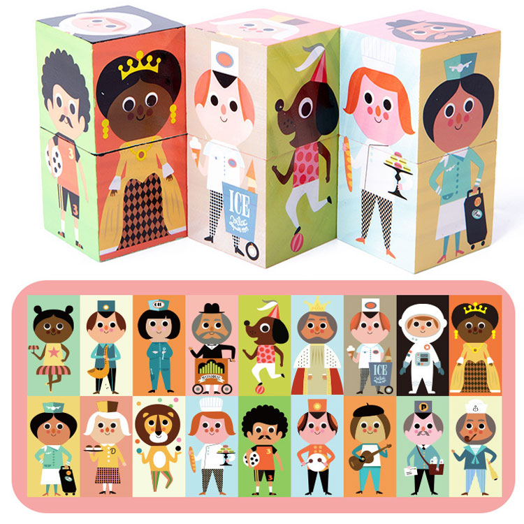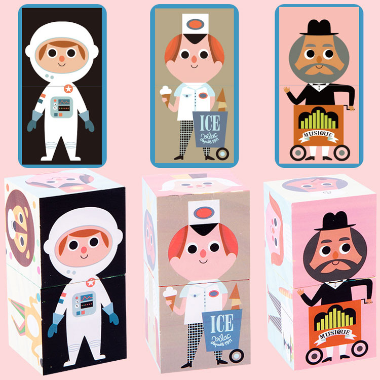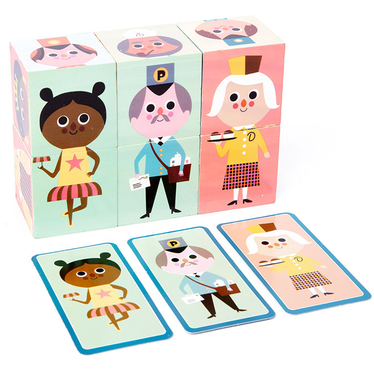 Тематические кубики, которые познакомят малыша с различными профессиями. Картинка с определенной профессией состоит из 2-х кубиков. В набор входят двухсторонние карточки с изображением профессий, которые помогут ребенку правильно собрать ту или иную профессию из кубиков.