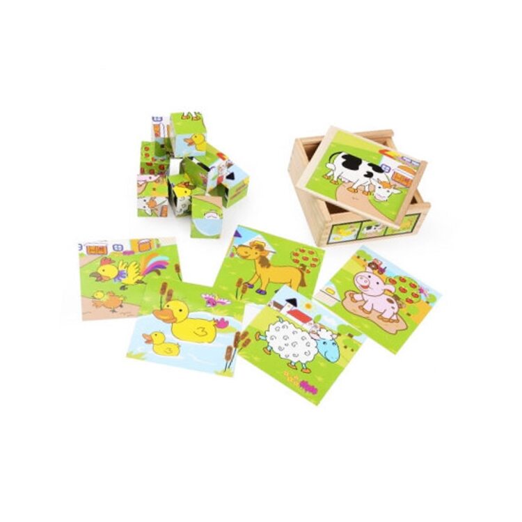 Из 9 кубиков "Домашние животные" можно собрать 6 красочных картинок. Такая работа порадует вашего малыша, станет для него настоящим открытием. Простой поворот кубика, и получается новое изображение! Малыш может играть с таким набором в логические и творческие игры. Также он получит новую информацию о жизни животных за городом, приобретет важные навыки, узнает новые слова.