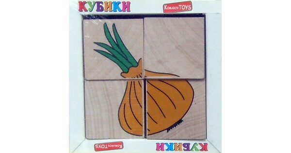 Ребенок получает сведения об окружающем мире в игровой форме. Поэтому полезной игрушкой для малыша станут кубики «фрукты и овощи». Если правильно повернуть все грани, получится рисунок: лук, морковка, капуста. Переворачивая кубики другой стороной, получаем новую картинку!