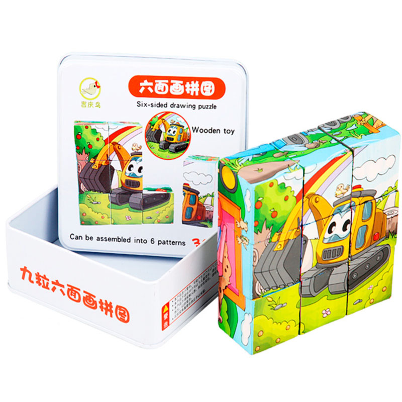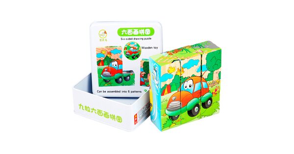 Если грани окрашены, значит, из них можно сложить интересную картинку! При этом плоские пазлы можно превратить только в один сюжет. А вот, поворачивая кубы другой стороной, можно получить 5 новых картинок!