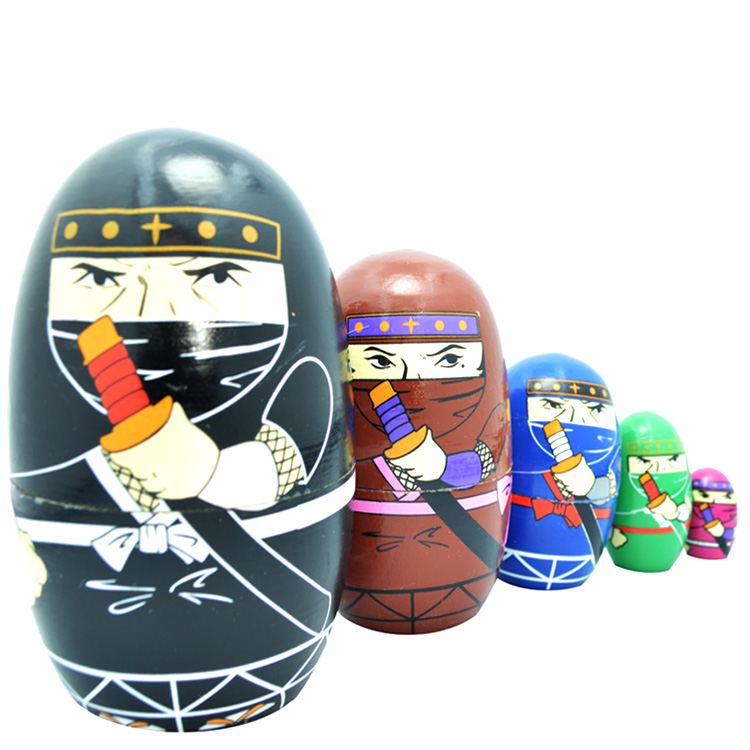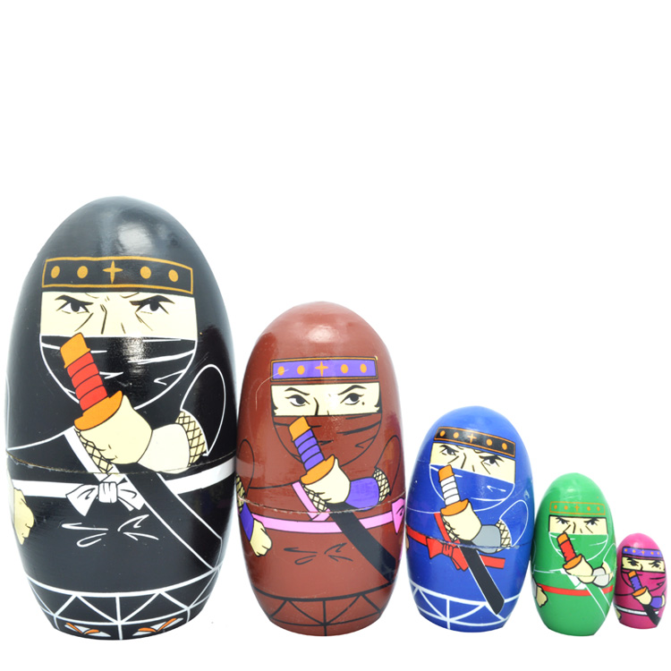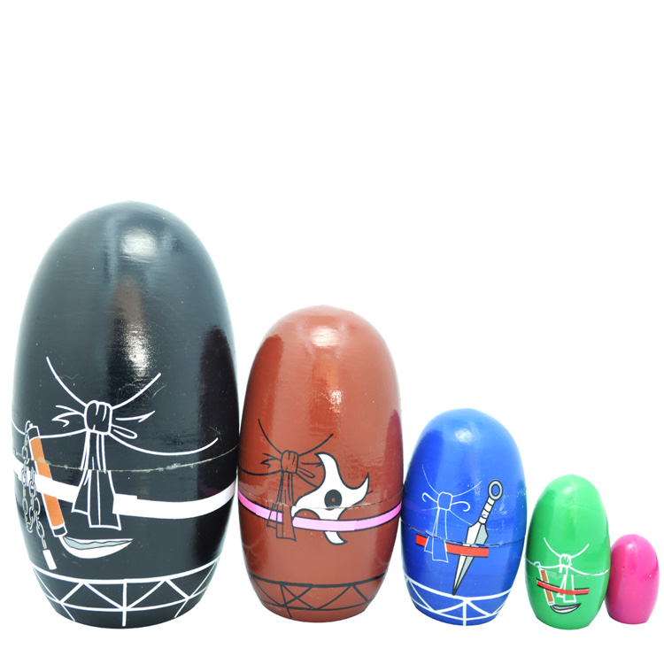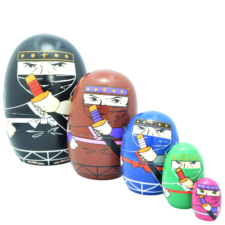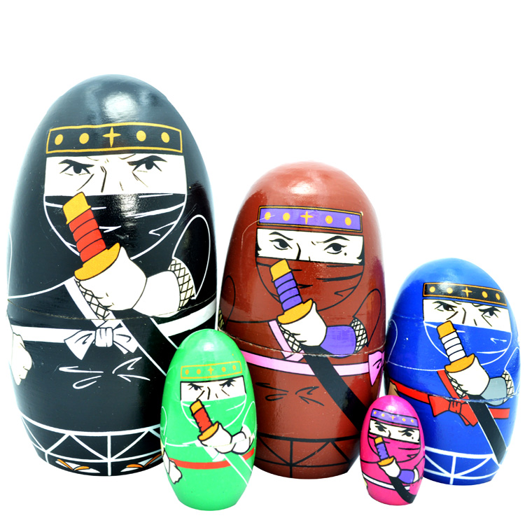 Матрешка выполнена в виде героев мультфильма о непобедимых ниндзя «Ниндзяго».
