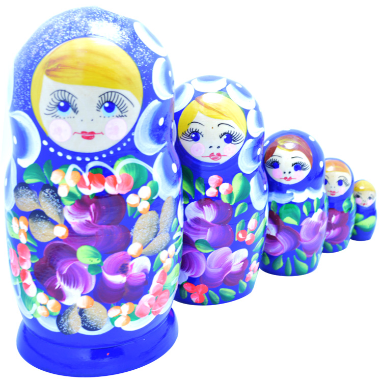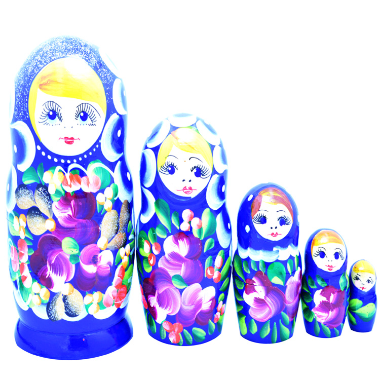 Комплект игрушек Матрешка 5 в 1 расписная в синем цвете – прекрасный выбор подарка для маленькой девочки или мальчика, которые любят забавляться цветными деревянными фигурками. Родителям иногда стоит отвлекаться от повседневных забот и проводить время, играя со своим чадом. Стоит рассказать крохе, почему куколку назвали Матрешка, это уменьшительно-ласкательное женское русское имя от имени Матрена. В украинском языке аналог имени Мотря, а куколка соответственно «Мотрийка».