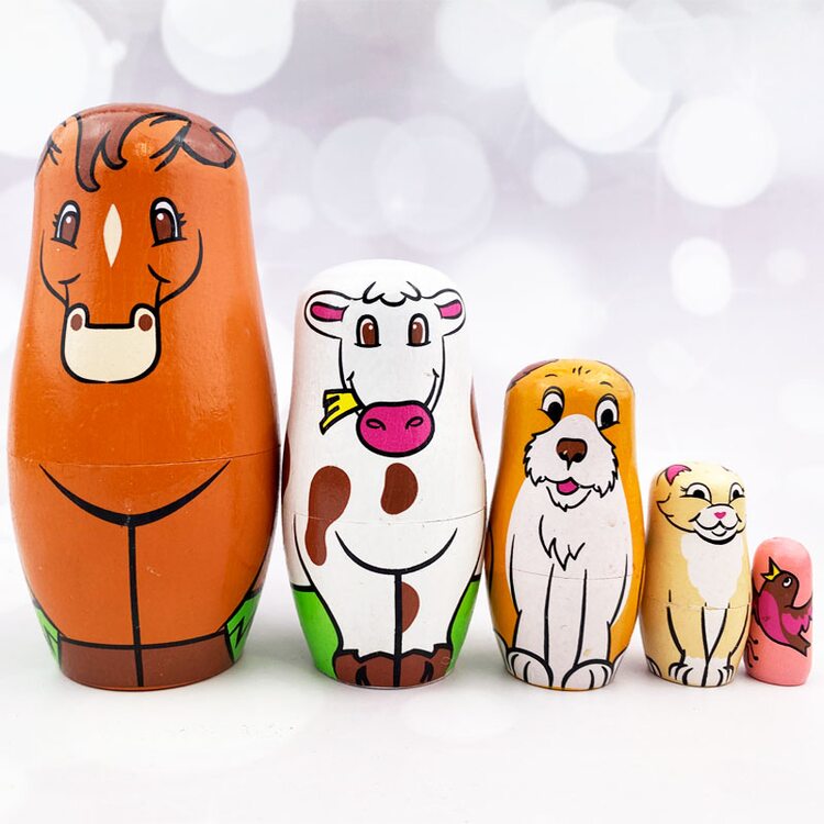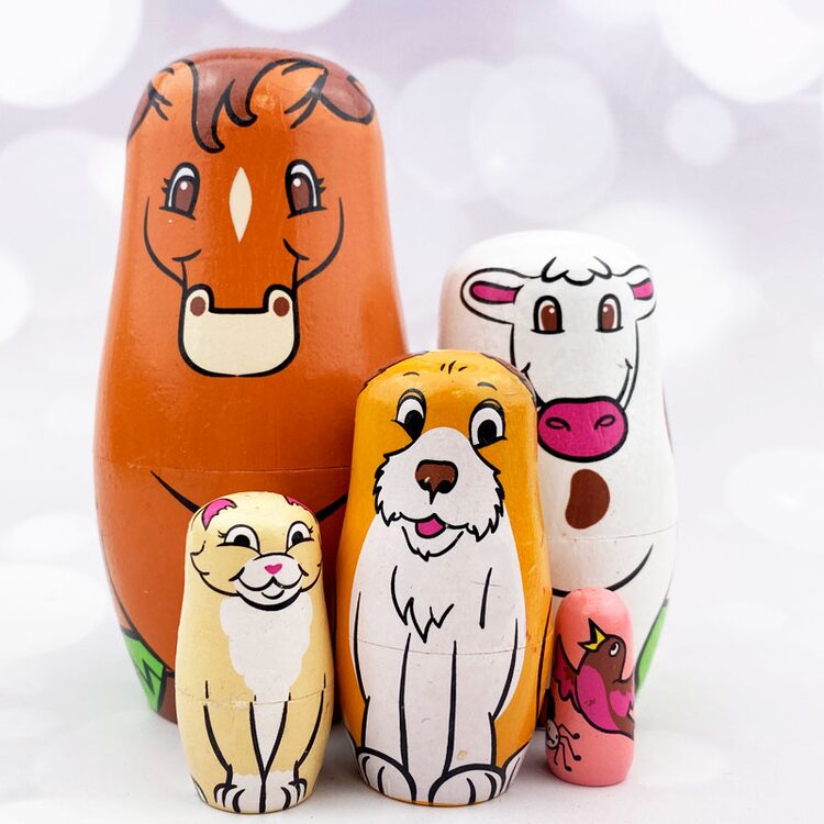 Матрешка "Животные на ферме" - это 5 фигурок, которые "прячутся" друг в друга. Доставая персонажей один за другим, малыш каждый раз получает сюрприз: новую игрушку. Тех животных, которых он видел в книжке, теперь можно взять в руки, "погладить", ощупать, включить в ролевую игру.
