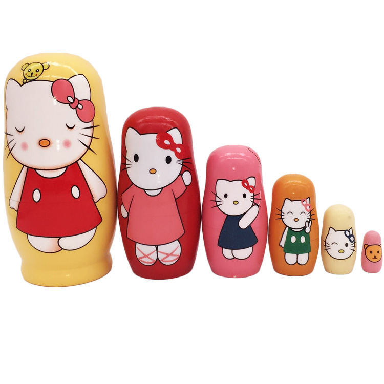 Матрешка "Hello Kitty" - это шесть однотипных фигурок, отличающихся размером и цветовой гаммой. Для ребенка станет настоящим сюрпризом, что фигурки прячутся одна в другую, а из одной игрушки получается сразу шесть!