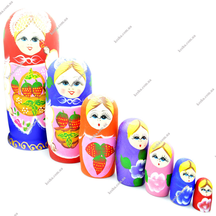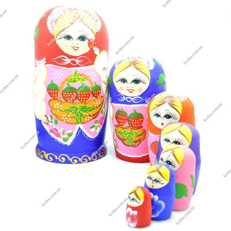 Еще одна матрешка с нарисованными сочными ягодами клубники.