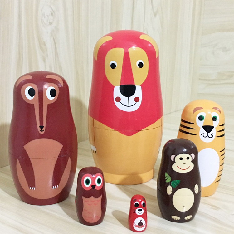 6 матрешек в виде различных представителей животного мира.