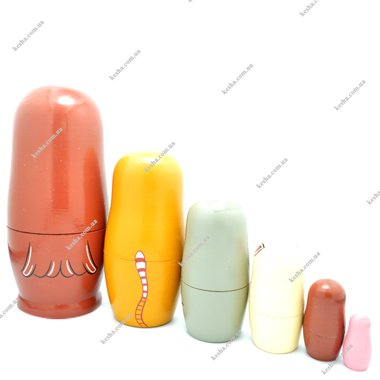 Деревянная матрешка в виде различных птиц и животных.