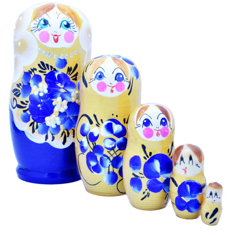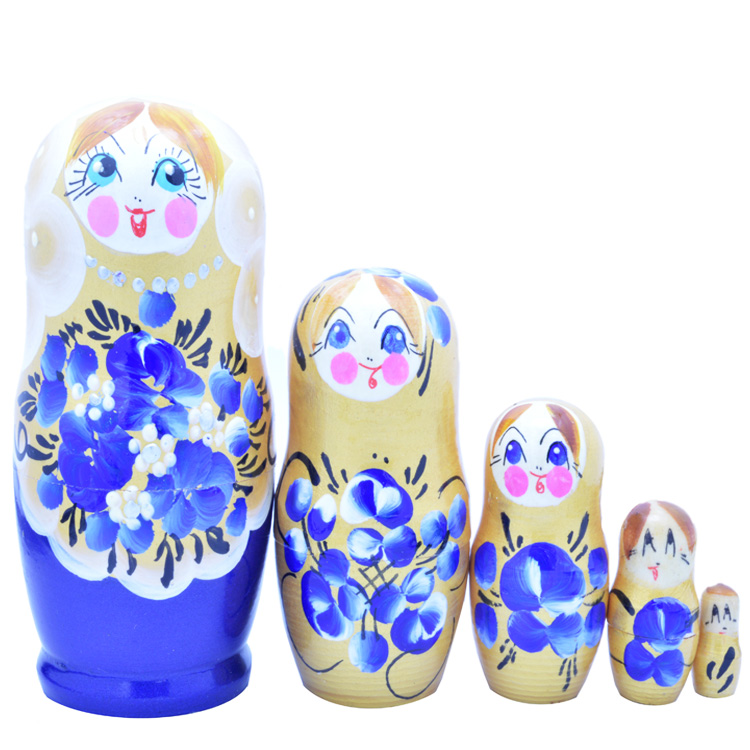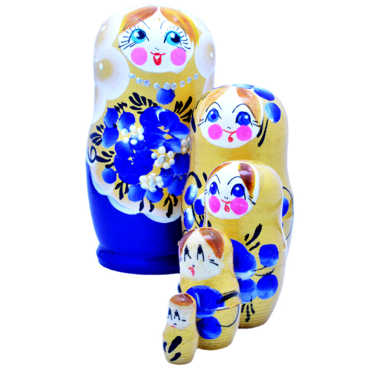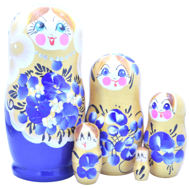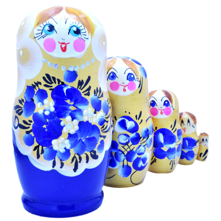 У многих родителей Сувенирная матрешка «Синяя» вызывает ностальгию и приятные воспоминания из далекого детства. Но актуальность данной игрушки не утрачена и в наше время. Ценность такого комплекта в натуральной фактуре древесины и природной энергетике. Красиво оформленная поверхность кукольных фигурок знакомит малыша с элементами художественной росписи в народном стиле.