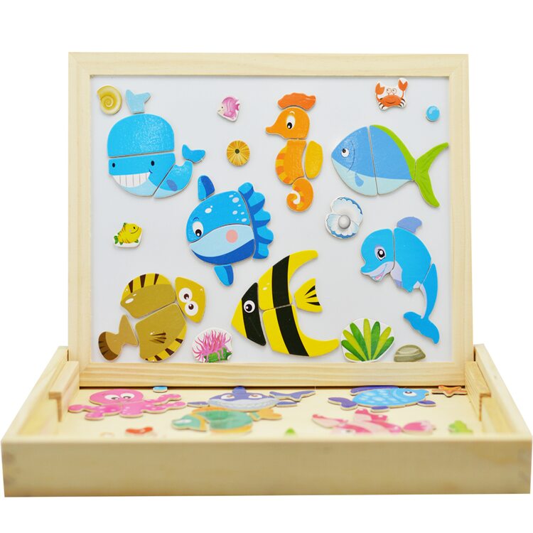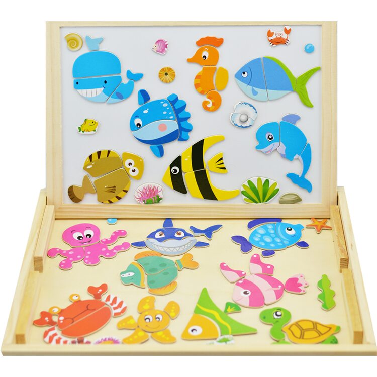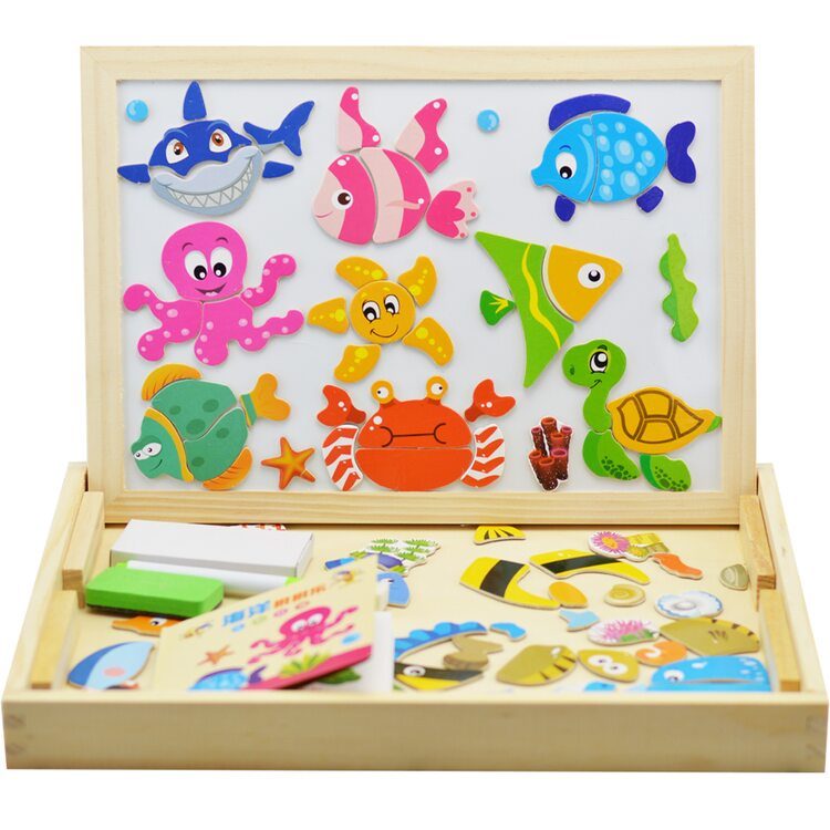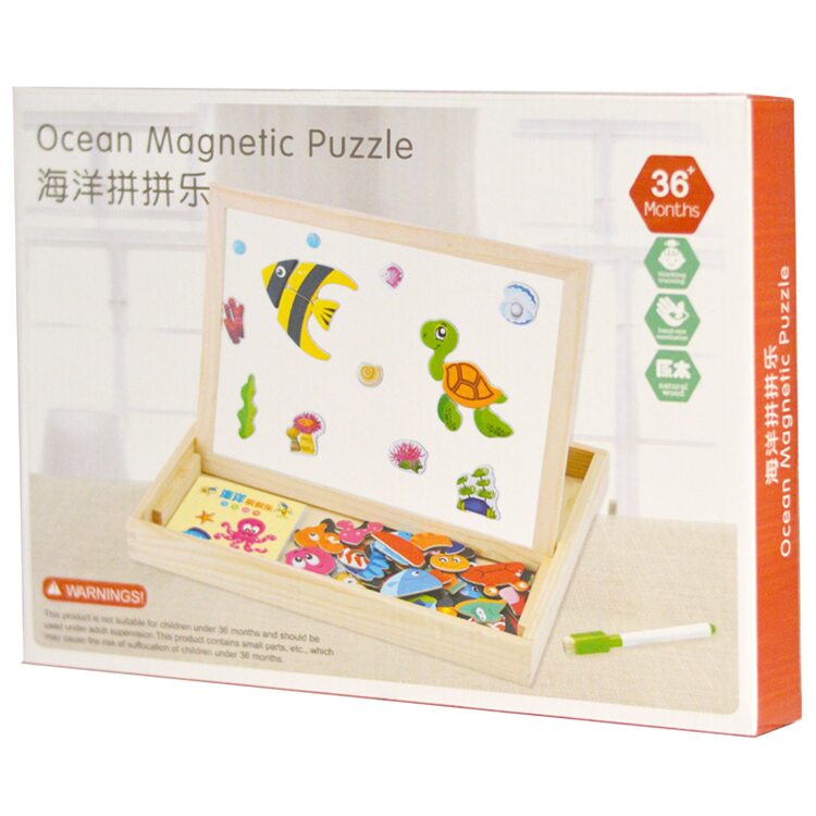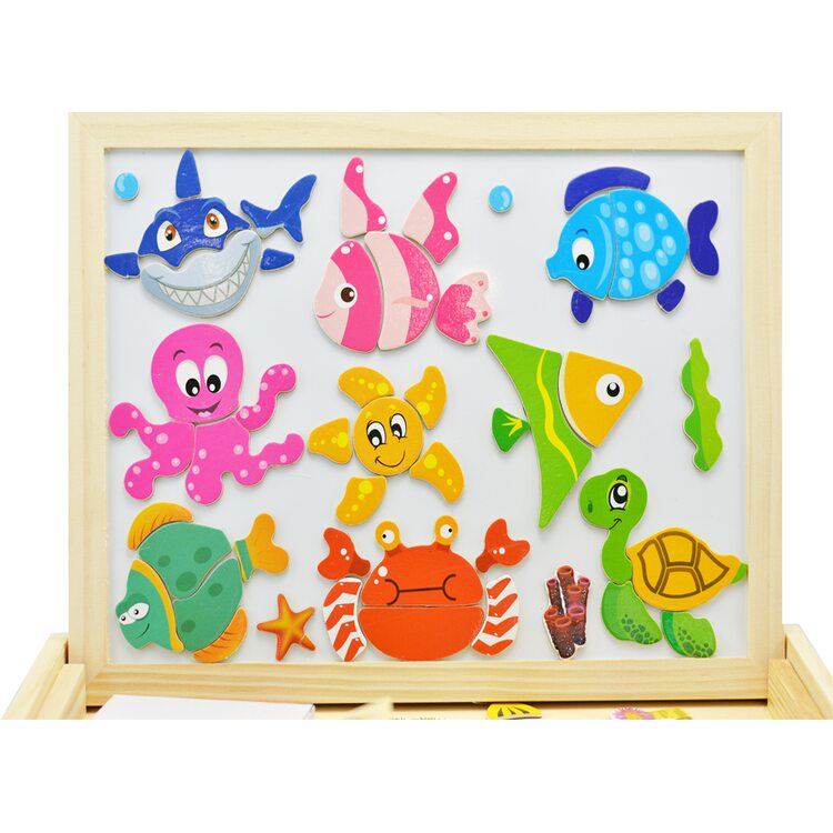 Еще один набор из серии магнитных игр для Вашего ребенка. В набор входят множество различных магнитных деталей морской тематики, 2-х сторонняя доска, мелки, маркер, книжечка с примерами картинок. Веселого Вам времяпровождения.