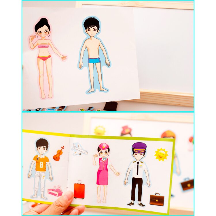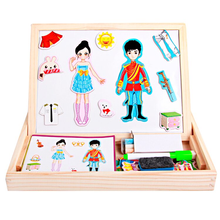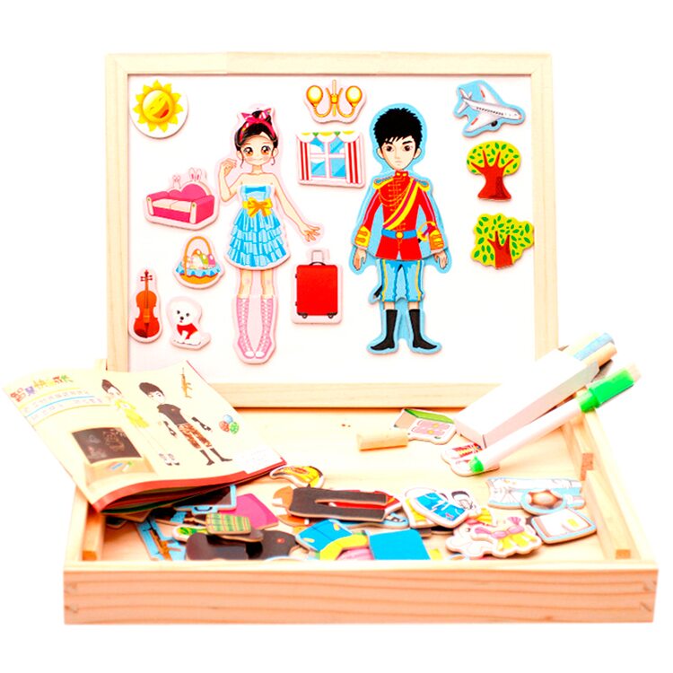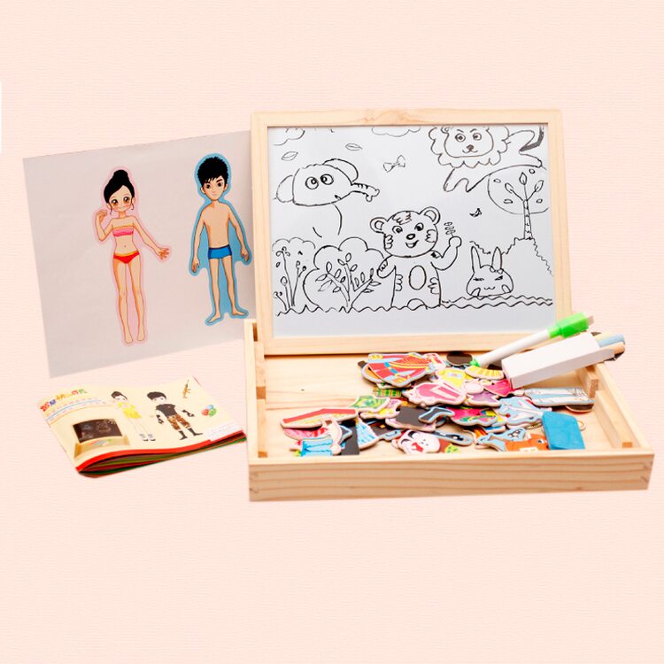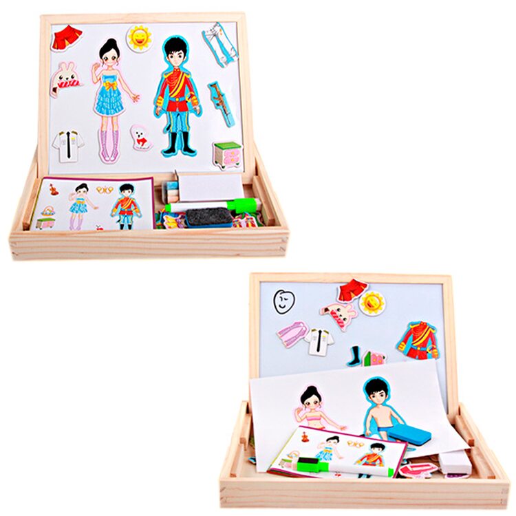 Магнитный гардероб для мальчика и девочки. Подбираем одежду, учимся комбинировать части гардероба. В комплект входит двухсторонняя досточка для рисования маркерами и мелками.
