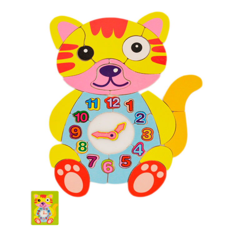 Набор магнитов из которых можно сложить часы в виде котенка как пазл.