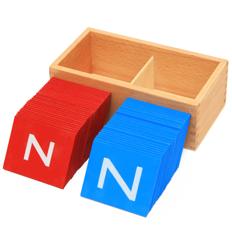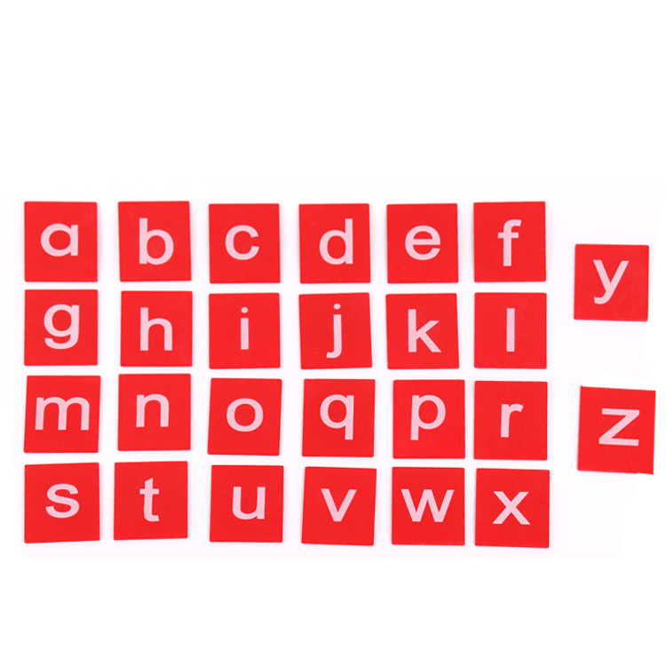 На деревянные таблички нанесены буквы английского алфавита. Их поверхность отличается на ощупь от основного материала, что способствует запоминанию изображения с помощью осязания. С помощью такого пособия ребенок постигает связь между буквами и звуками, готовит пальчики к письму. Занятия проводят с детьми от 3-х лет.