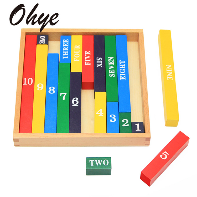 Числовые штанги Марии Монтессори от ТМ OHye – одно из самых популярных учебных пособий для дошкольников. Здесь понятие чисел непосредственно связано с их геометрической интерпретацией. Все бруски пронумерованы, их длина соответствует цифровому обозначению. Таким образом, с помощью призм можно освоить примеры на сложение-вычитание.