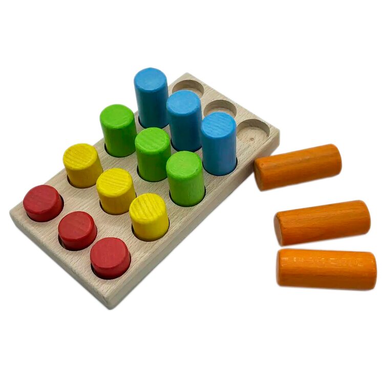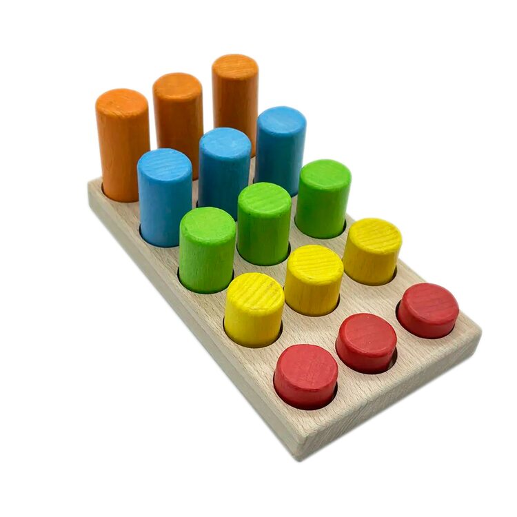 Игра для развития у ребенка различных навыков связанных с классификацией предметов по размеру, цвету, высоте. Игра разработана с использованием принципов Монтессори.