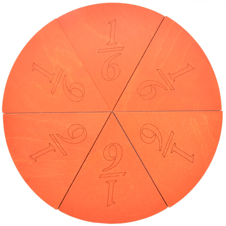 Малыш лучше усваивает новые знания, если может наглядно представить себе часть и целое. С этой точки зрения магнитная дидактическая игра «Дроби» - удобное наглядное пособие по методике Монтессори. При изучении дробных величин малыш может ориентироваться на цветовую гамму. Кроме того, на каждом элементе есть «подсказка»: 1/3, 1/6, 1/4 (она предназначена для детей постарше). Также можно сравнивать части круга между собой. Во время такого сравнения малыш легко поймет: чем больше частей, тем меньше размер одного «кусочка»!