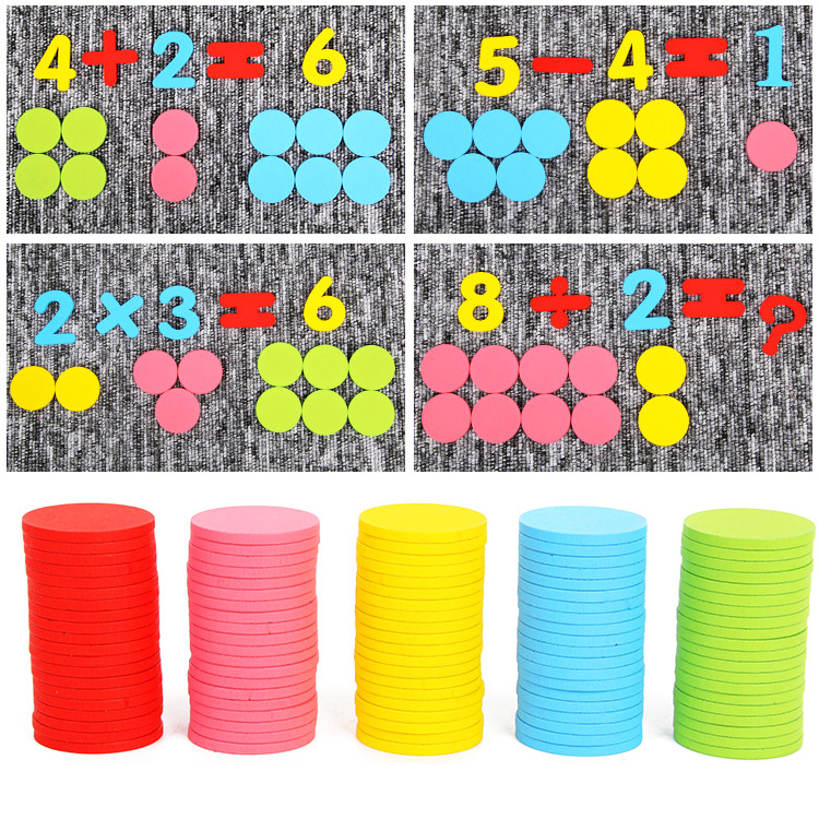 Набор для счета с цветными деревянными кружочками с цифрами и знаками. Используя кружочки как счетный материал Ваш ребенок легко научится правильно считать, решать простые арифметические примеры. В дальнейшем с кружочков можно переходить на примеры в цифровом варианте с использованием цифр и знаков.