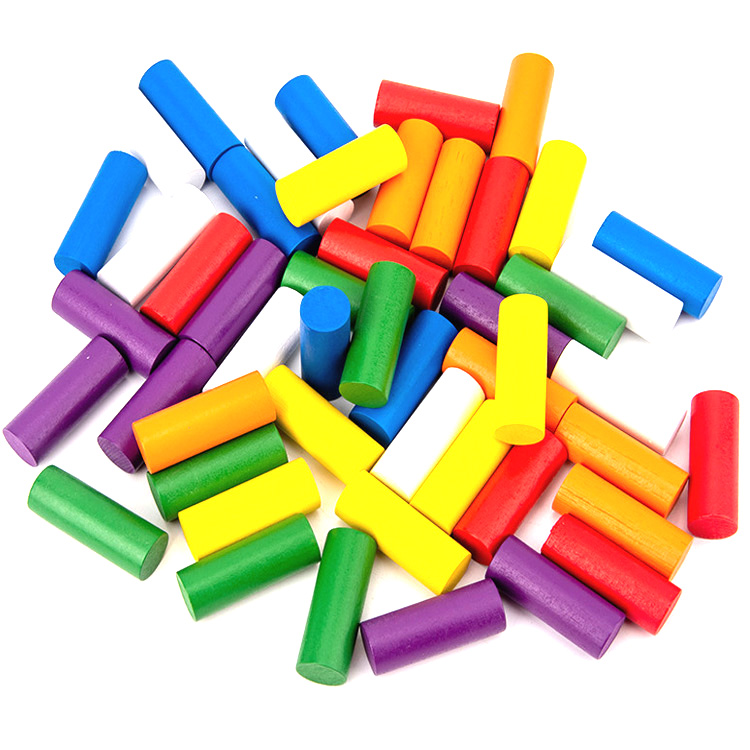 Набор цилиндров одинакового размера, но разных цветов. Знакомимся с цветами, учимся сортировать, подбирать, вставлять в ячейки. Цилиндры можно использовать как счетный материал, который поможет ребенку научится считать и решать простые примеры на сложение-вычитание.