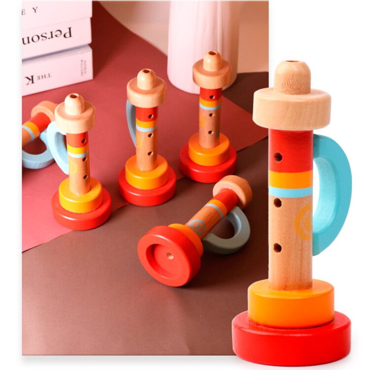 Деревянная дудочка является простейшим духовым музыкальным инструментом. На игрушечной дудочке три прорезей-дырочек и отдельное отверстие для выдоха.