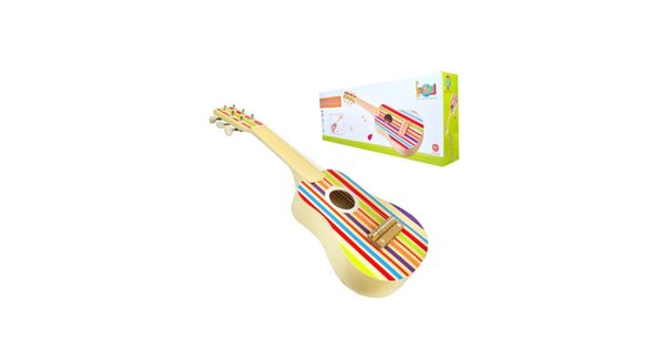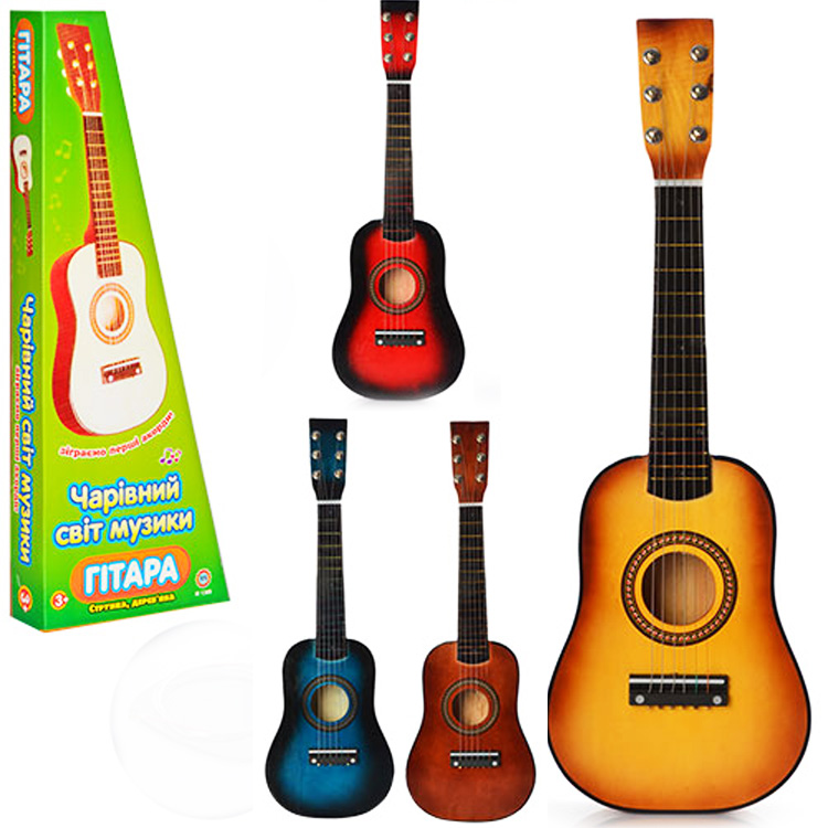 С детства малыша окружают игрушки со звуковым модулем внутри. Но гораздо интереснее создавать мелодии самостоятельно! В таком случае советуем купить деревянную гитару. Это прекрасный инструмент для индивидуальных занятий!