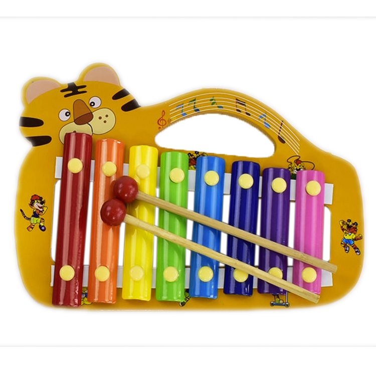 Симпатичный ксилофон предназначен для детей, которые начинают заниматься музыкой. Выполненный в виде красивого желто-полосатого тигра с умильными ушками он наверняка понравится вашему ребенку. Ксилофон с ручкой «Тигр» удобен тем, что каждая его металлическая плашка, производящая звук определенного тона при ударе, выкрашена в свой цвет, что облегчает запоминание последовательности действий при попытке сыграть те или иные композиции. Игра на музыкальном инструменте способствует приобретению чувства ритма, музыкального слуха и памяти.