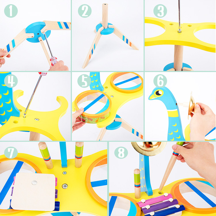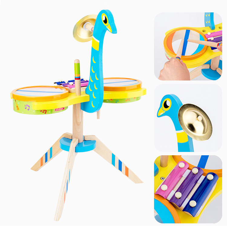 Установка выполнена в виде яркой «Жар-птицы» на треножнике. Собрать ее просто. Но выполнение такой задачи заставит малыша проявить смекалку и другие способности. С такой игрушкой у маленького музыканта появится возможность показать свои таланты, порадовать маму и папу полноценным концертом на ударных инструментах!