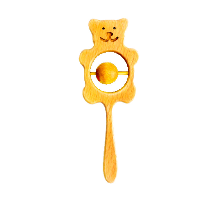 Погремушка (шумелка) – первая игрушка ребёнка. Она развлекает, побуждает водить глазками за изделием. Наступает момент, когда ребёнок сам пытается взять забавную фигурку. Поэтому ей придают обтекаемую форму. Проверяют на отсутствие мелких заусениц.