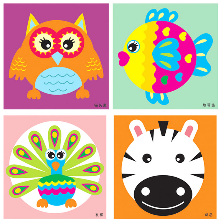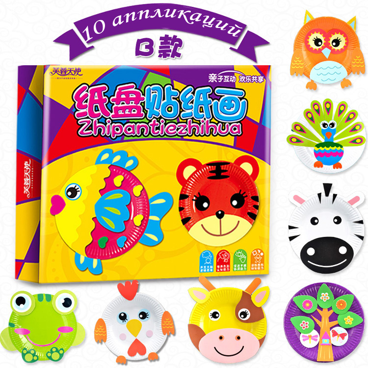Прекрасный набор для детского творчества с использованием очень интересного материала. Аппликация выкладывается на цветные картонные тарелочки. Набор состоит из 10 тарелочек, двухстороннего скотча, 10 картинок-заготовок, лист-инструкция на примере одной из предложенных аппликаций. Немного фантазии и Ваш шедевр готов.