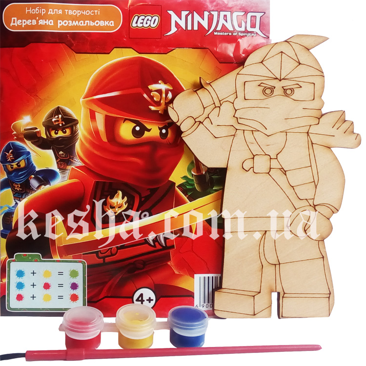 Раскраска мульгероя Ниндзяго. В наборе краски, кисточка и деревянная фигурка.