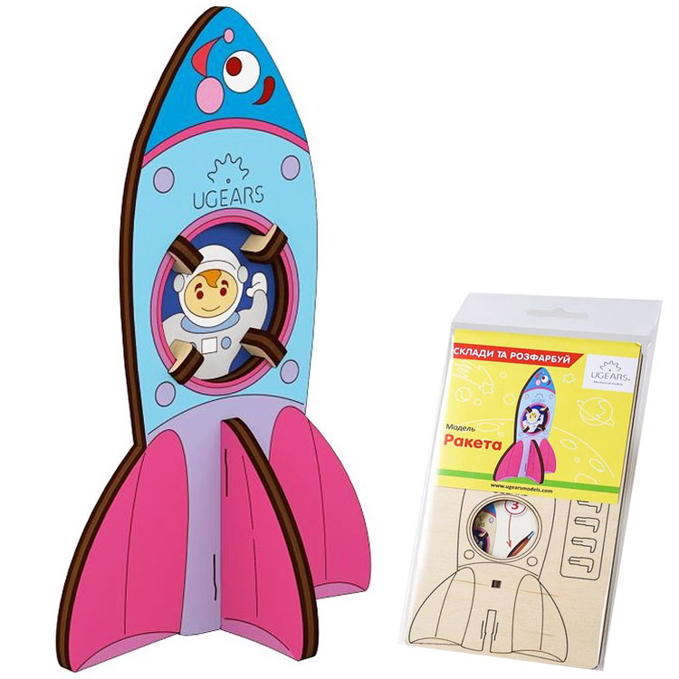 Оригинальная сборная 3D модель «Ракета» ТМ Ugears - это невероятная увлекательная игрушка, самоделка-раскраска для подрастающего поколения. Она займет вашего ребенка на часик, другой - это факт. Ребенок будет конструировать свою собственную ракету, с которой сможет потом играть в космонавта, путешествуя по просторам вашего дома, воображая, что он капитан космического корабля. Сборная 3D модель «Ракета» состоит из 8 деревянных деталей. Нужно подключить смекалку, чтобы самостоятельно сконструировать этот космический аппарат. Хотя объемная игрушка довольно легкая в сборке, напоминает работу с пазлами, с ракетой к тому же можно играть. Следующим немаловажным пунктом будет раскраска. Кроха, используя свою фантазию, украсит космическую ракету различными цветами и рисунками. Здесь уже фантазии можно разгуляться, а после завершения строительства смело отправляйтесь в захватывающее путешествие, вместе с друзьями.