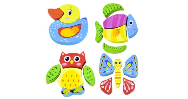 Годовалым малышам понравятся игрушечные животные с подвижными частями. Эти оригинальные игрушки собираются из 8-12 деталей. В них есть особенность. Если тронуть фигурку за «хвостик», начнут двигаться другие части!