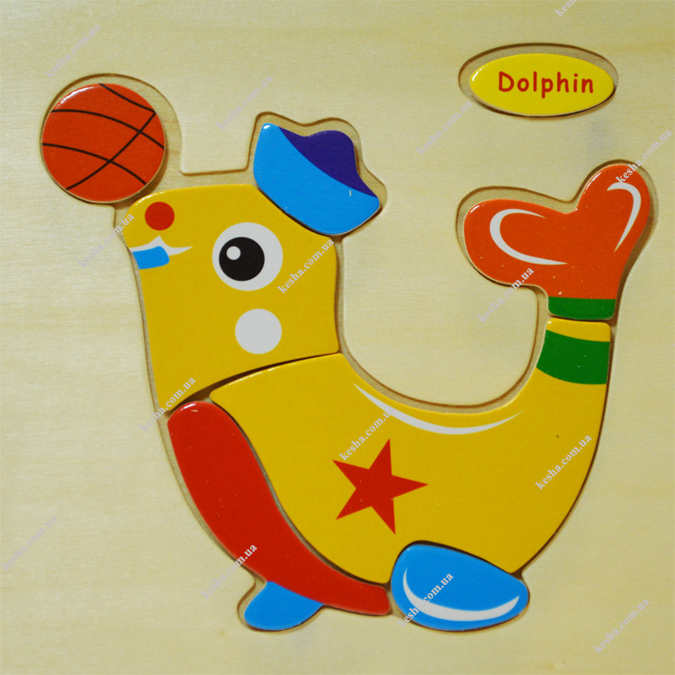 Собираем с деталей дельфинчика, который играет с мячиком.