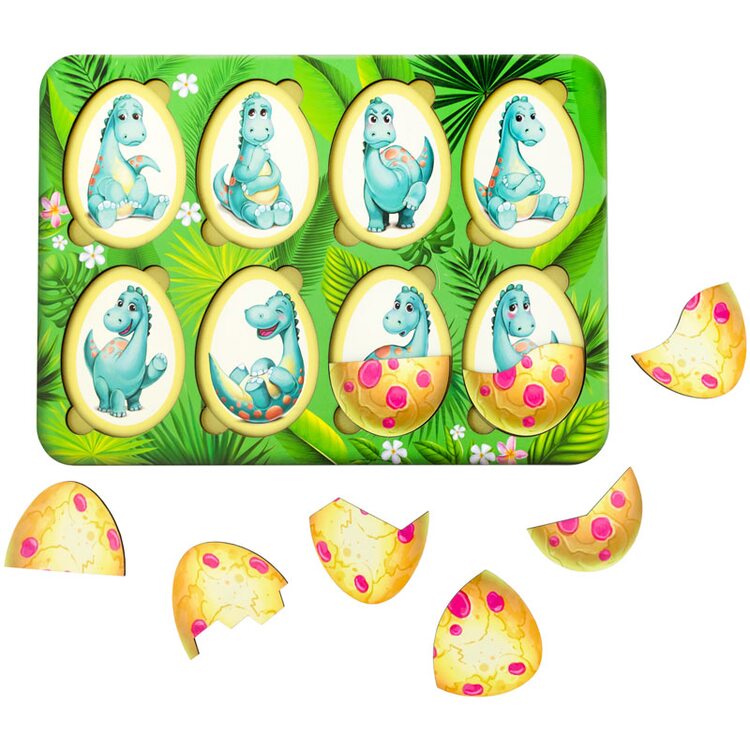 Задача для ребенка: правильно сложить все части яиц, изучить эмоции наших динозавриков.