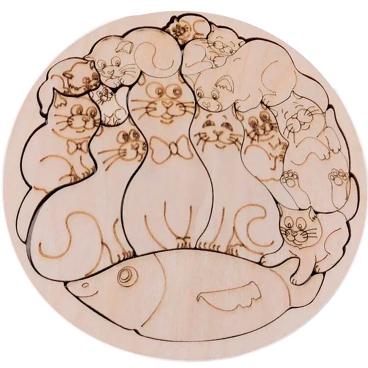 Небольшого размера пазл с симпатичными котятами, которых можно разрисовать в любимые цвета. Играя ребенок сможет познакомится с принципом сборки такого типа головоломки. Котиков можно считать, на их примерах объяснить понятия размера: больше-меньше, выше-ниже, толстый-худой, высокий-средний-низкий и т.д.