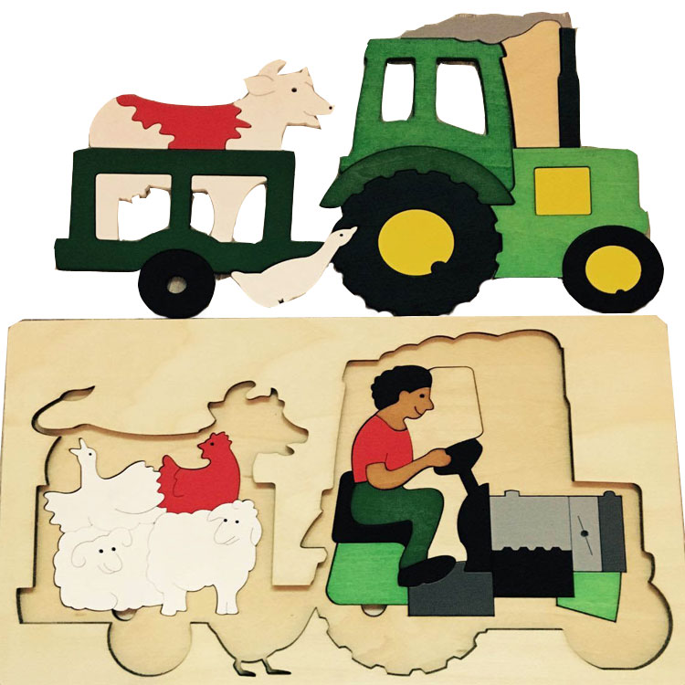 Мозаика на тему домашнего хозяйства. На картинке изображен трактор с фермером и домашними животными.
