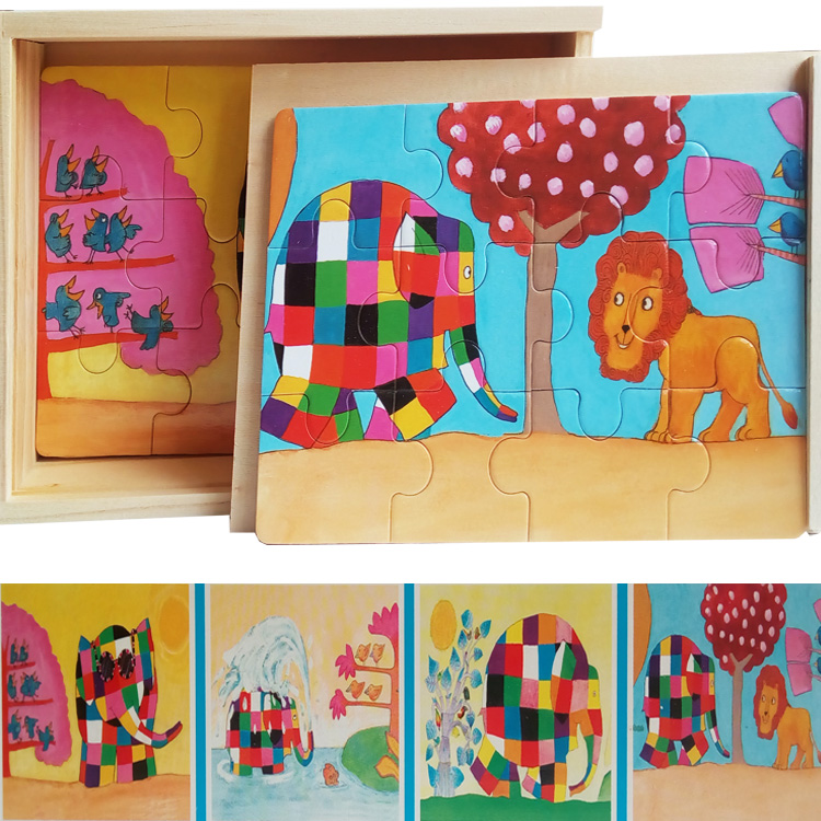 В качестве подсказки к пазлу прилагаются цветные картинки. Каждый пазл состоит из 12 деталей, всего в наборе 4 пазла.