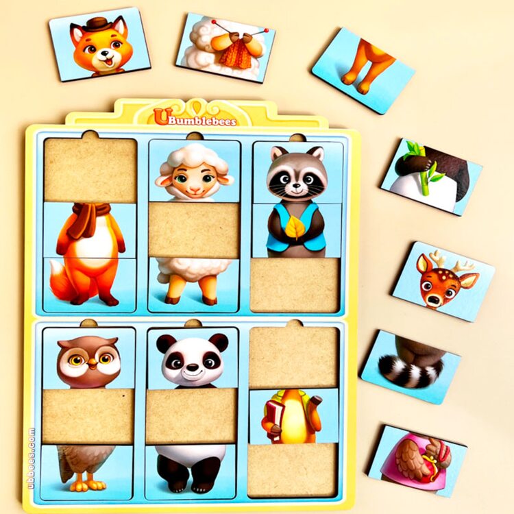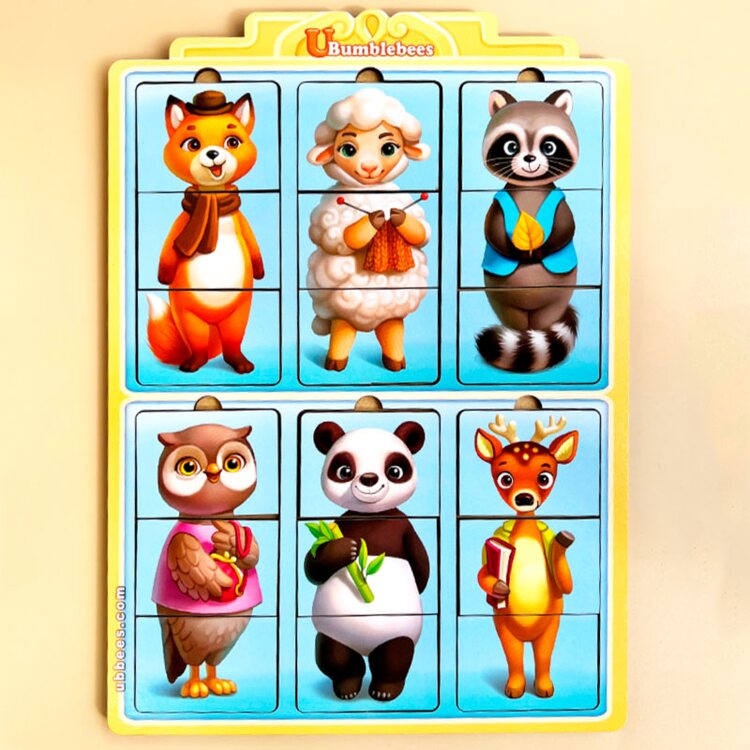 Набор пазлов для самых маленьких представляет собой картинки с изображением животных, которые нужно вставлять в деревянную основу. Играя, ребенок сможет распознавать животных по видам, названиям, голосам.