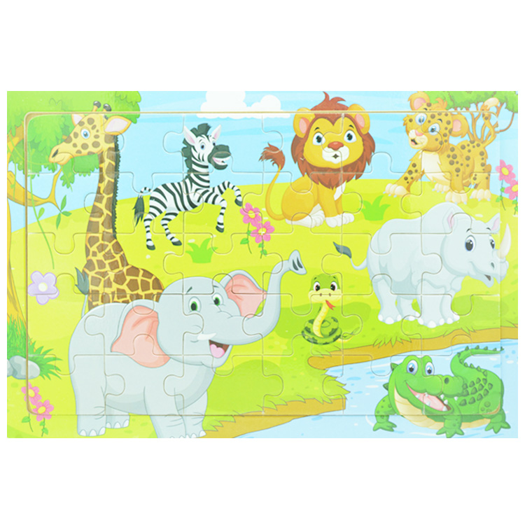 Учимся собирать пазл без подслоя. Яркая картинка с экзотическими животными состоит из 30 деталей.
