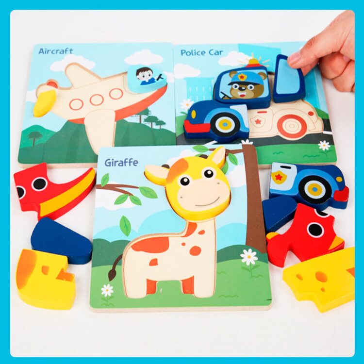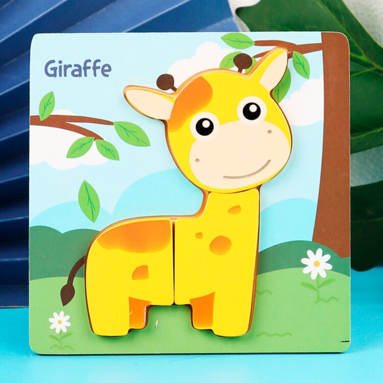 Жирафик на картинке пазла собирается из 3 объемных деталей.