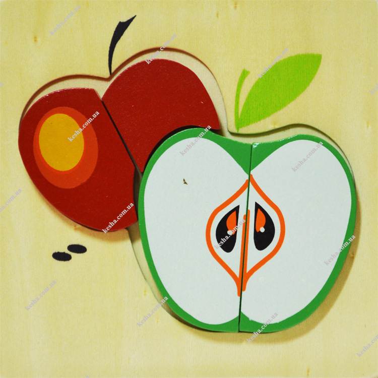 Складываем картинку с изображением яблочек с объемных деталей.