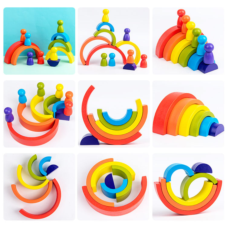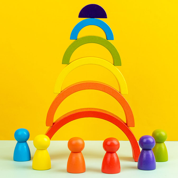 Пирамидка-балансир в виде разноцветных полуколец с человечками таких же цветов. Играем, выстраиваем различные композиции.