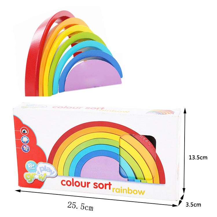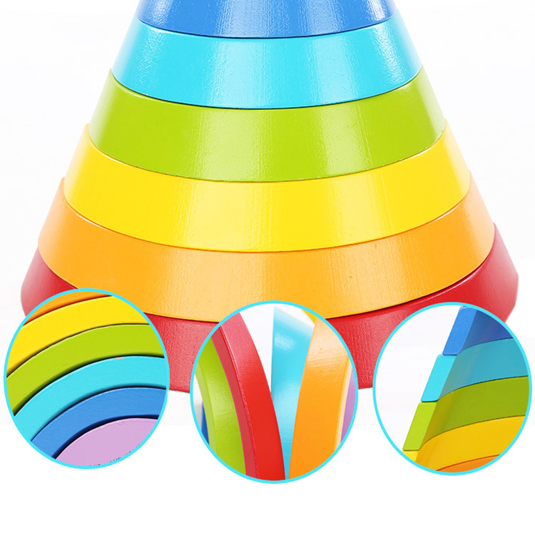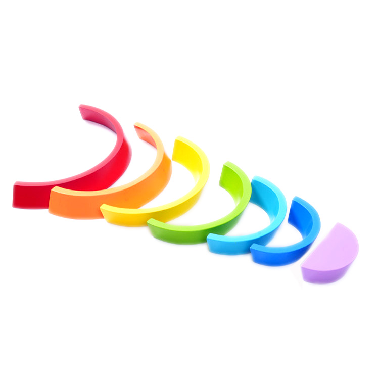 Пирамидка в виде дуг окрашенных во все 7 цветов радуги. Познакомьте Вашего ребенка с понятиями размера и цвета. Это большая, а это маленькая, давай сделаем радужный туннель из красивых дуг и т.д. Ваш ребенок будет приятно удивлен количеством различных узоров, фигурок , которые можно выложить из разноцветных дуг пирамидки.