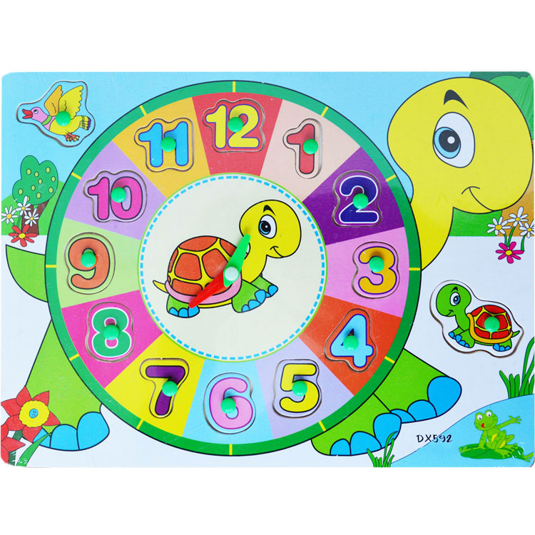 Деревянная рамка-вкладыш в виде часов, которые размещены на панцире черепашки. Играя, знакомимся с цифрами, учимся считать.