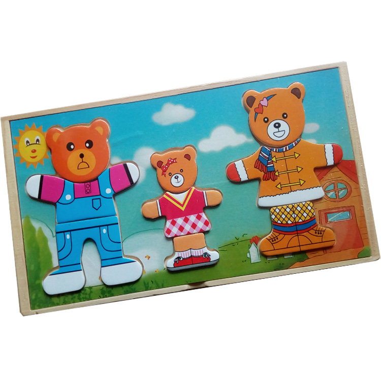 Оденьте всю семью медведей. Подберите наряды к завтраку или к обеду, на прогулку, на праздник. Замечательный набор-пазл "Одень медведей" поможет вашему малышу увлечённо провести время. Здесь можно подбирать комплекты одежды всем членам семьи медведей: маме, папе и сынишке в зависимости от времени года, для обеда, сна, приёма гостей. Также можно менять мордочки героев, изучая их эмоции. Все элементы удобно помещаются в деревянной коробке.