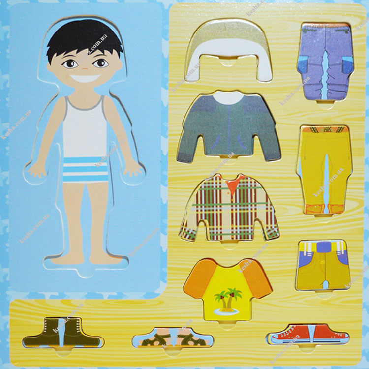Набор «Гардеробчик. Одежда для мальчика» придется по душе самым маленьким деткам. Он прекрасно подойдет для первого знакомства с пазлами. Крупные элементы и красочное оформление привлекут внимание с первой минуты. Ребенок будет с удовольствием собирать контурный пазл. Ведь вкладыши так приятно держать в маленьких ручках, вынимать и возвращать на место. Родителям понравится, что: